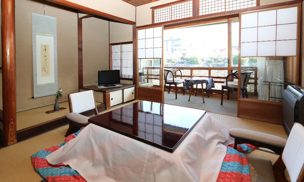 冬にはこたつで暖かくお過ごしいただけるよう、各部屋にご用意しております。